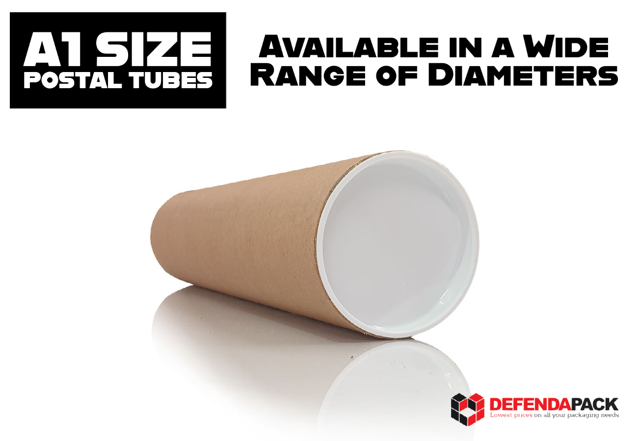 We offer A1 postal tubes in various diameters & even wall thicknesses. The most usual size tube used for A1 mailing is our 25” Long x 2” Diameter. The Metric size of this tube is 635mm x 50mm Diameter and it has a 1.5mm wall.