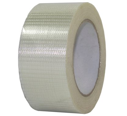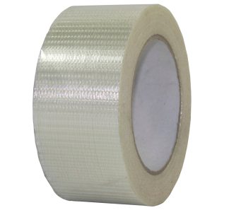 Also going by the name of X-Weave tape, it is a very heavy duty reinforced adhesive tape with two-directional fiberglass filaments running though the tape making it incredibly robust, and nearly impossible to break or stretch, an excellent product where extra strength is required. The lateral & longitudinal glassfibre reinforcement provides breaking and tearing resistance in both directions.