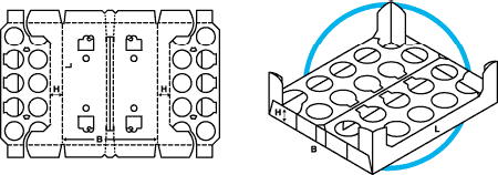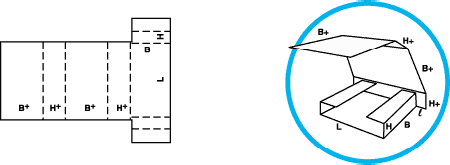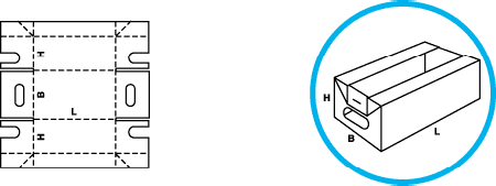 to form two or all side walls and the cover. Locking tabs, handles, display panels etc., can be