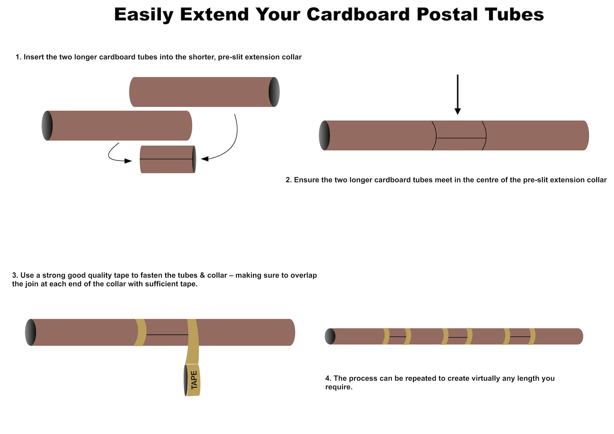 You can easily create your ideal length 8″ (200mm) diameter cardboard tubes with our postal tube extension kits.